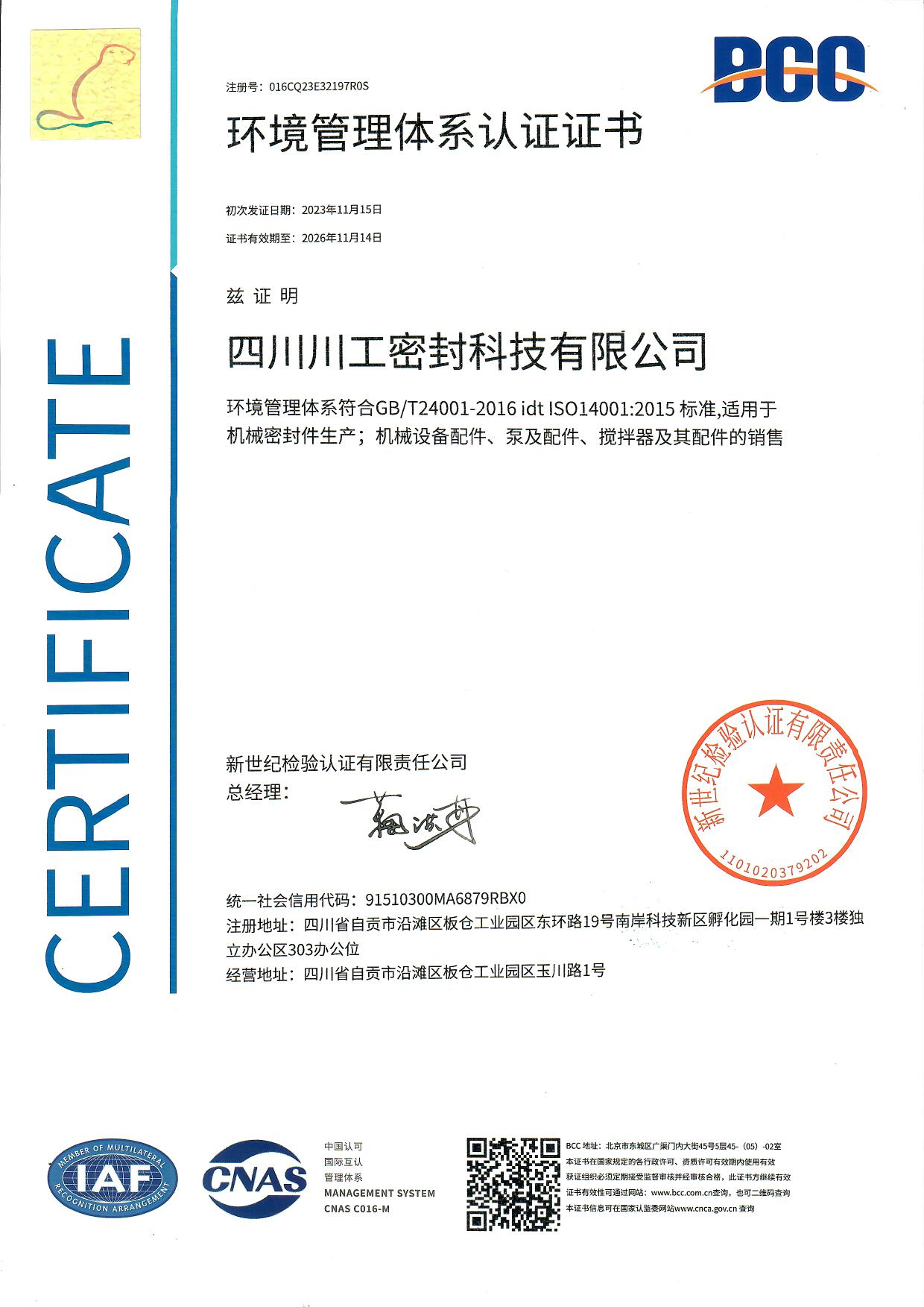 環(huán)境管理體系認(rèn)證證書